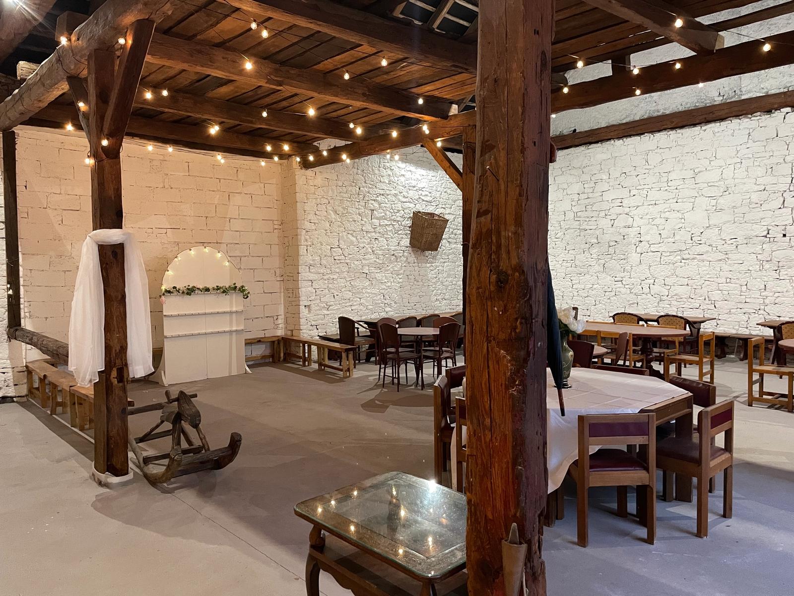 Stodola disponuje třinácti stoly, kde usadíme až 70 hostů. Je ideální pro svatební hostiny, příjemné posezení u kávy a svatebního dortu a při nepřízni počasí je zde možné uskutečnit i svatební obřad. Hostiny mohou být servírované i formou rautu. Nachází se zde i bar.
