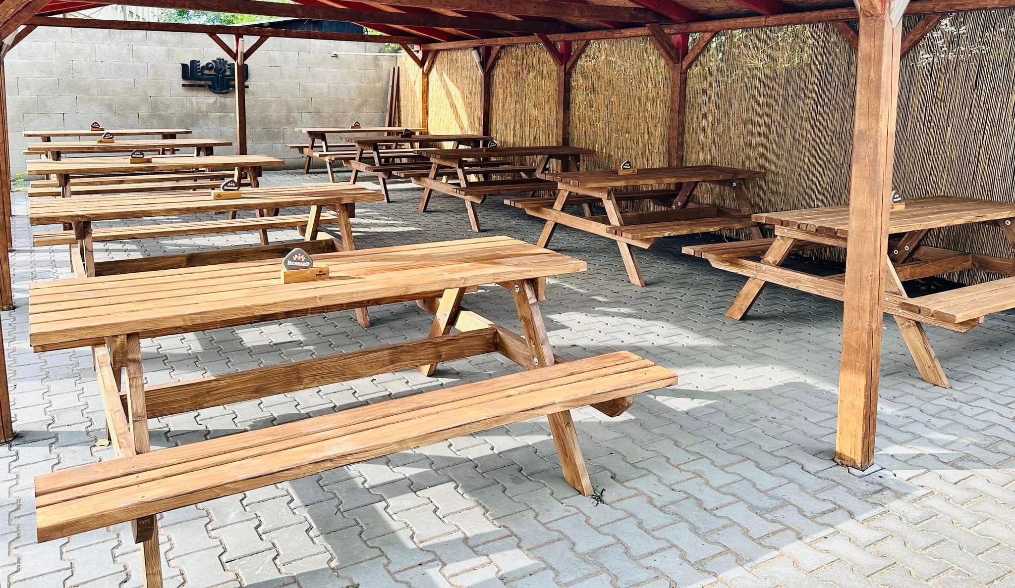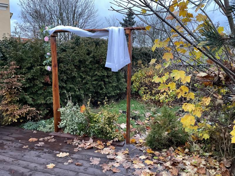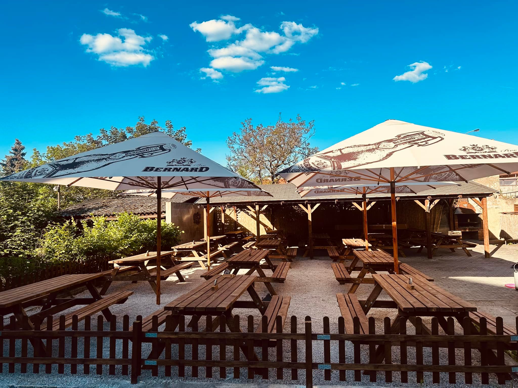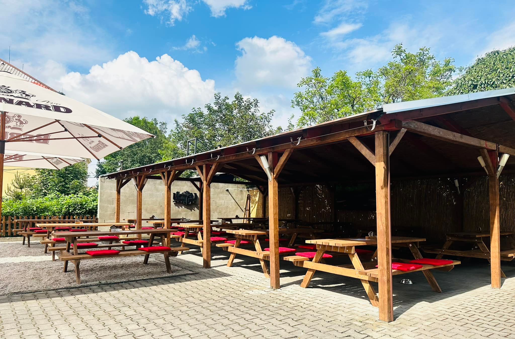 Zahrada je rozdělena do dvou částí. Jedna je malá zahrádka s podiem, kde mohou probíhat obřady. Tato část má slavobránu a lavičky na sezení. Druhá část zahrady je klasická restaurační zahrádka, zčásti zastřešena. Kapacita až 100 míst.