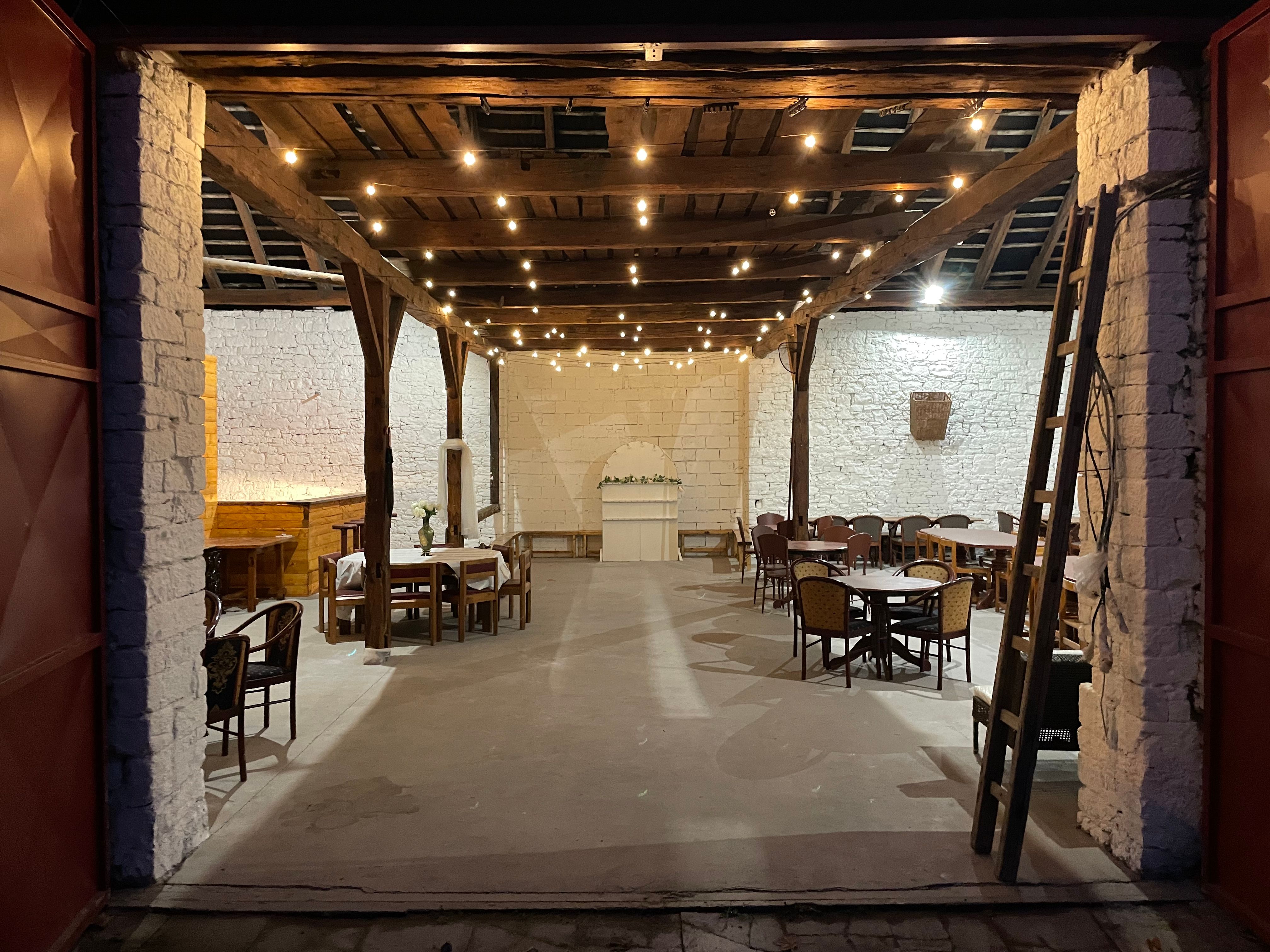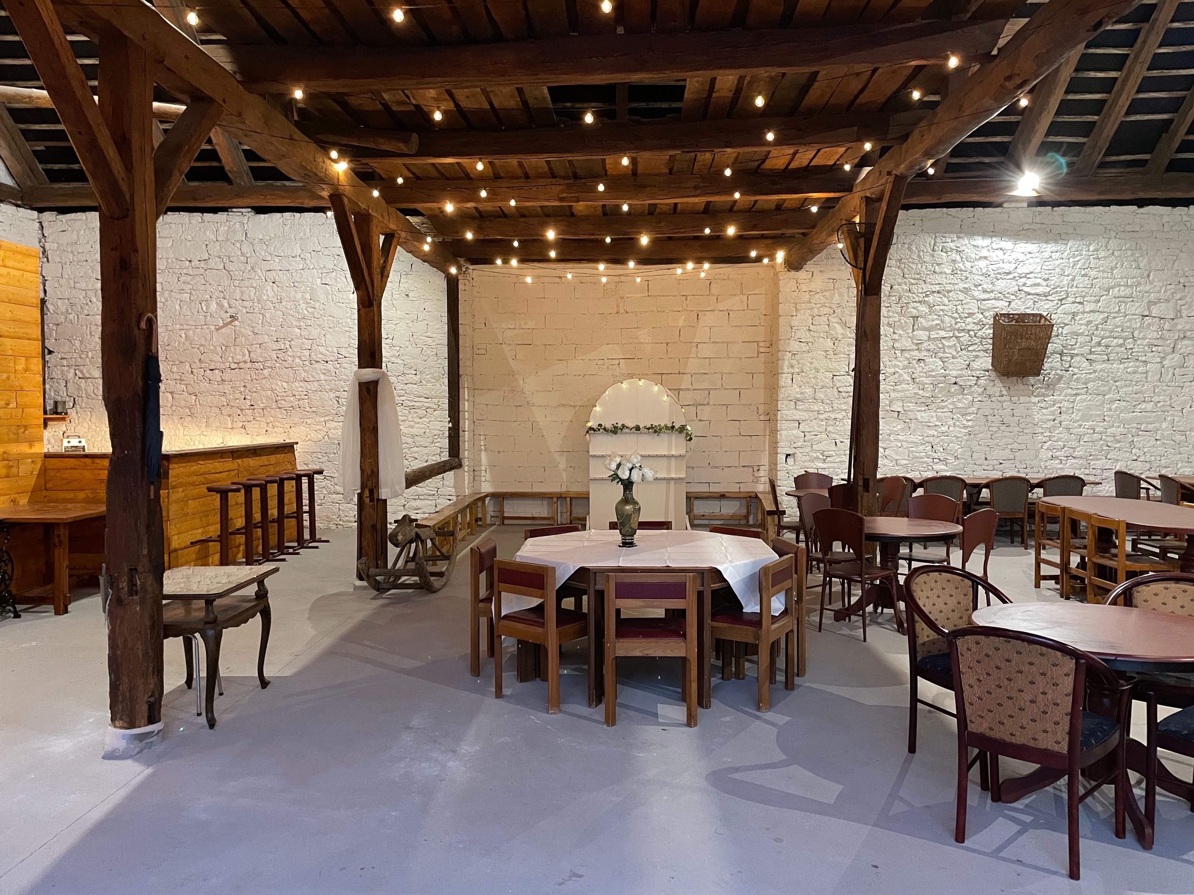 Stodola disponuje třinácti stoly, kde usadíme až 70 hostů. Je ideální pro svatební hostiny, příjemné posezení u kávy a svatebního dortu a při nepřízni počasí je zde možné uskutečnit i svatební obřad. Hostiny mohou být servírované i formou rautu. Nachází se zde i bar.