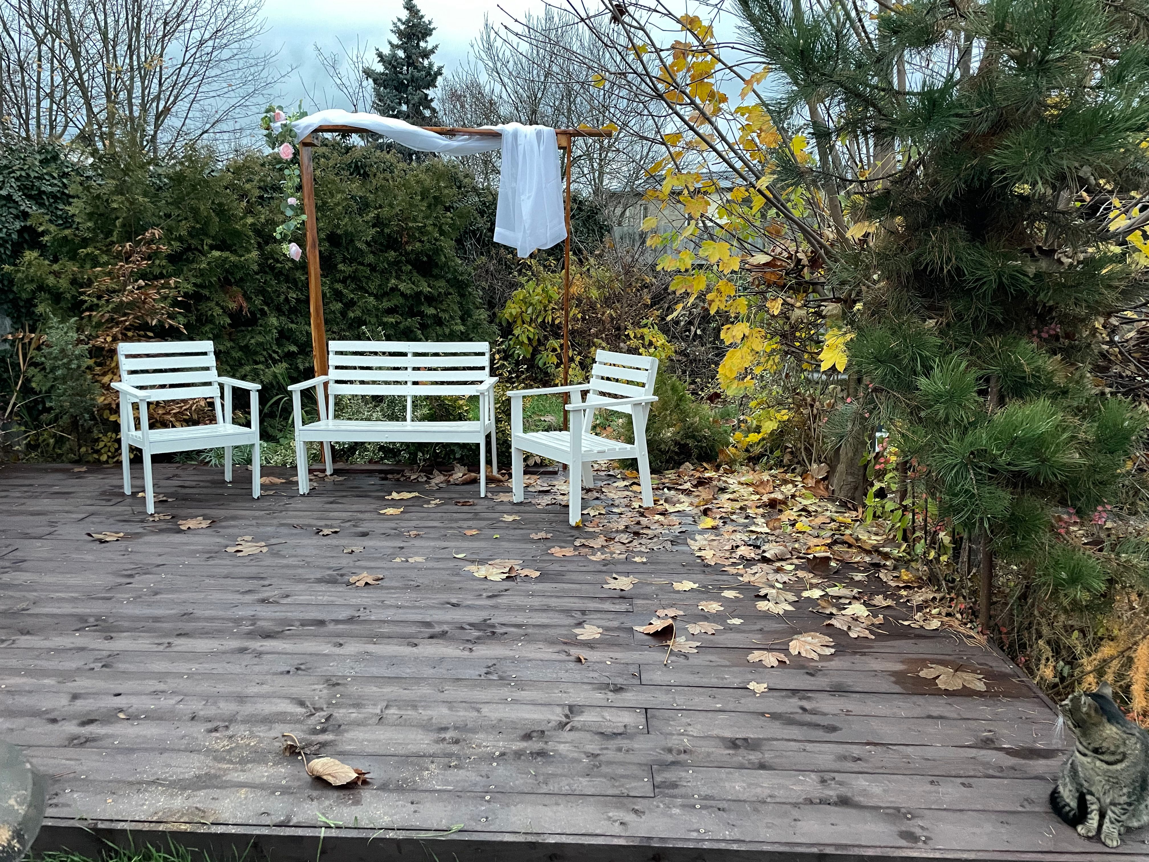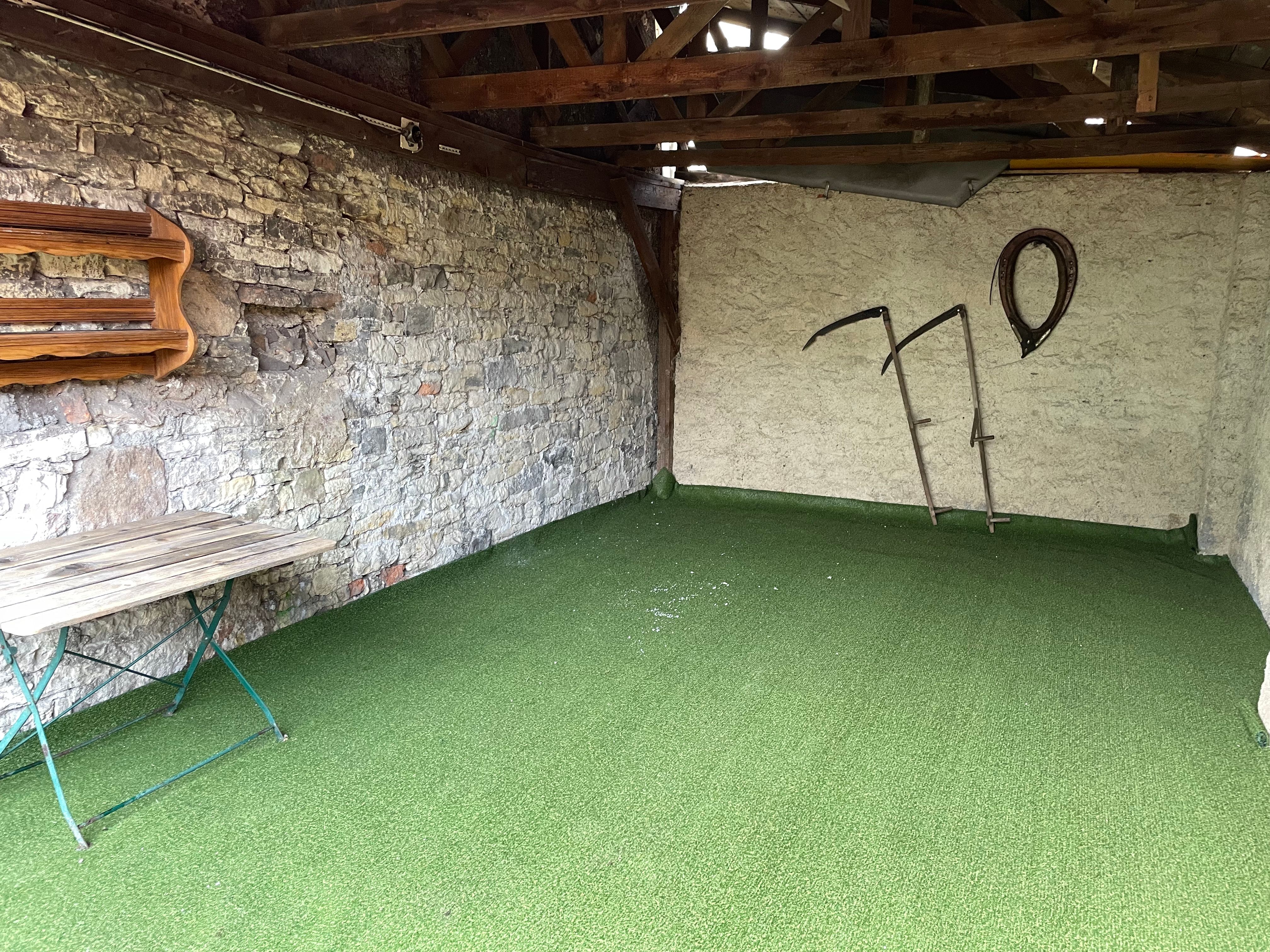 Na dvoře mezi stodolou a zahradou je další příjemné venkovní sezení pro hosty a houpačky pro děti.